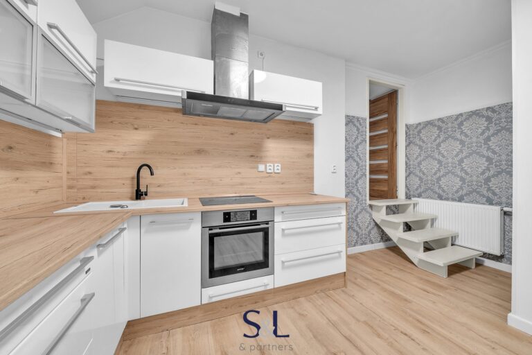 Zcela nově zrekonstruovaný byt, designově navržený v kombinaci s přírodními dřevěnými prvky.