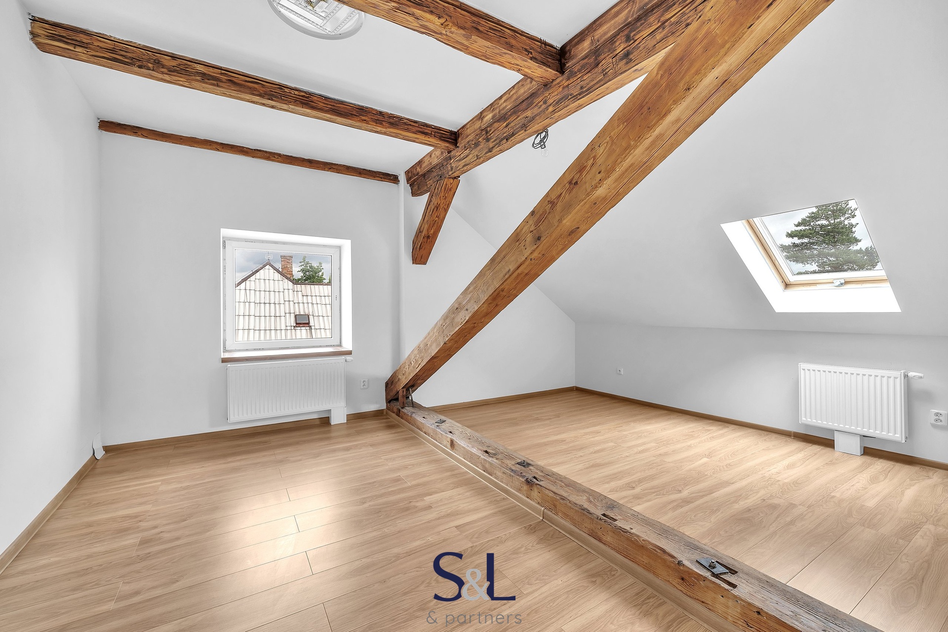 Celý byt je nově vybudovaný, včetně podlah, koupelny, elektroinstalace i topení. Podlahy, stěny i strop jsou zateplené (v zimě hřeje, v létě chladí), což zajišťuje maximální komfort po celý rok. Díky kombinaci střešních i klasických oken je byt krásně prosvětlený a zároveň příjemně útulný.