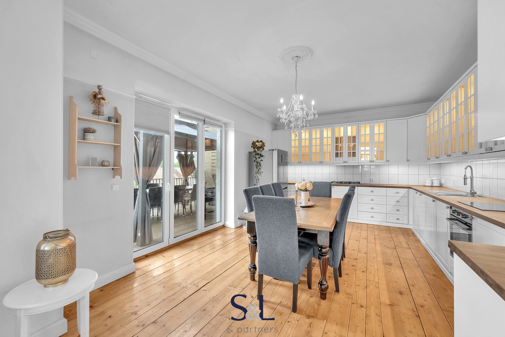 – prostorná kuchyně s jídelním stolem, plynovým i elektrickým sporákem, troubou, myčkou a přímým vstupem na terasu