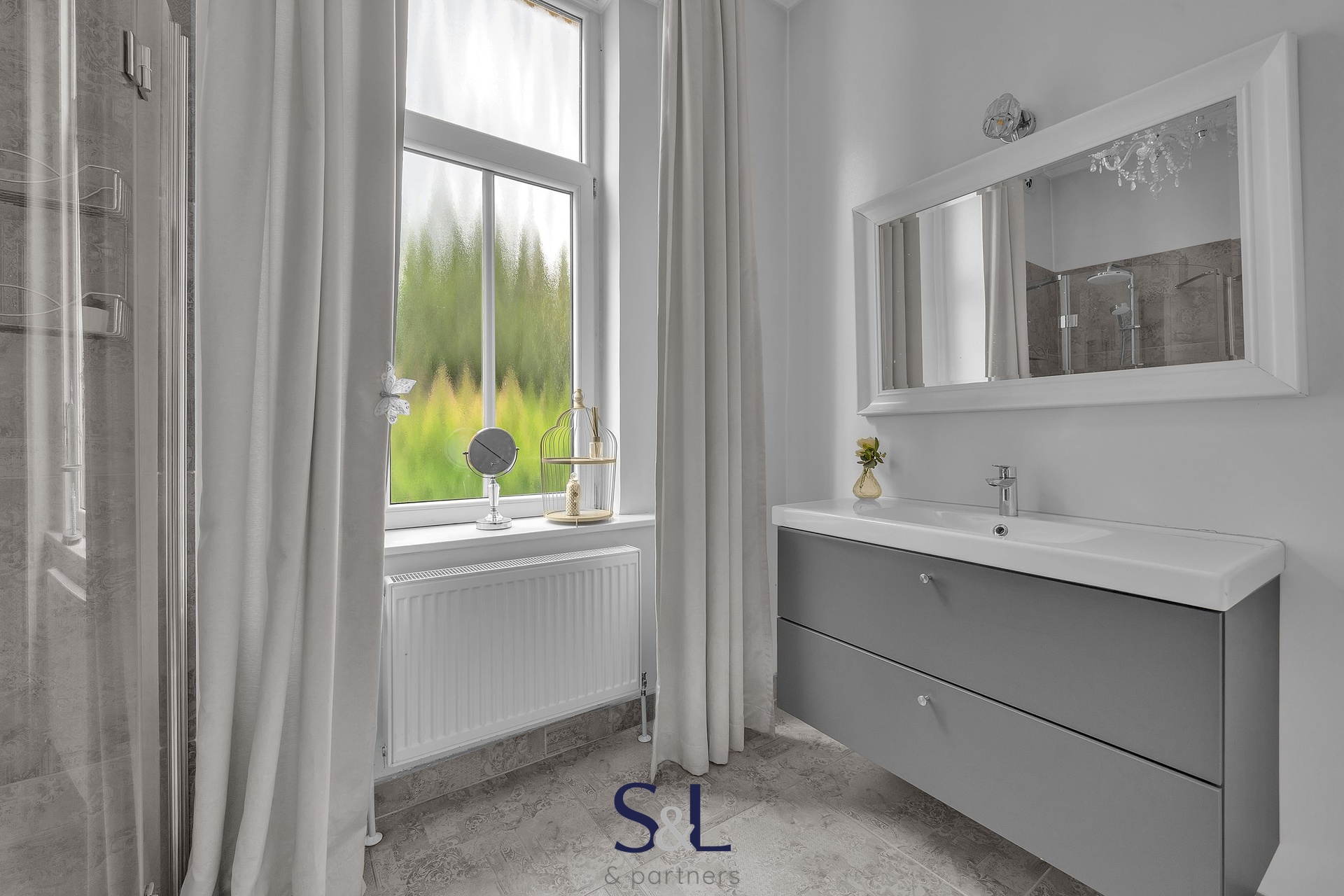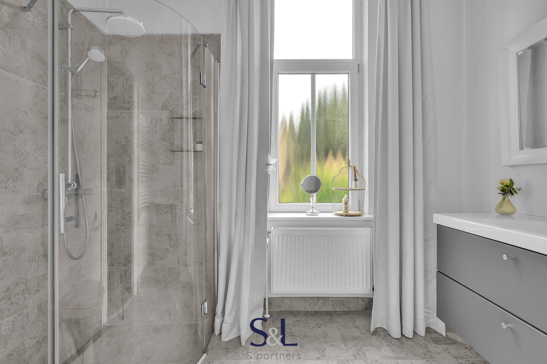 – stylová koupelna se sprchovým koutem a toaletou