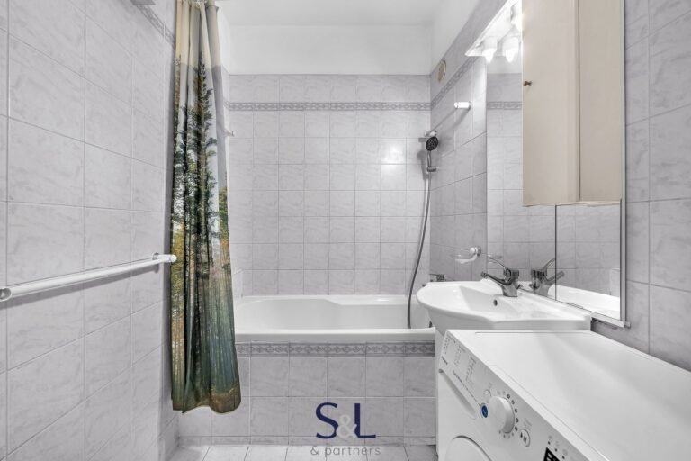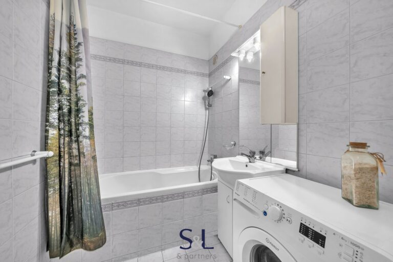 – Koupelna s vanou, umyvadlem a místem na pračku.