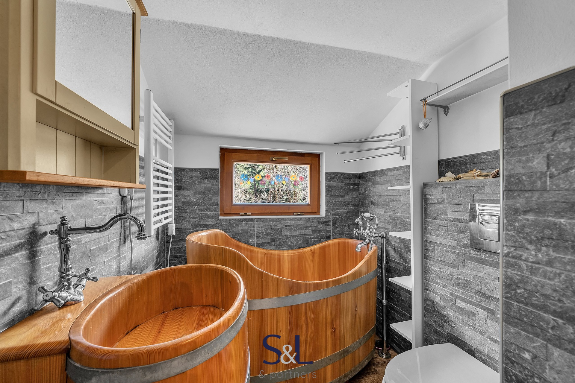 Velkým lákadlem je stylová koupelna s dřevěnou vanou, která působí luxusně a přitom zůstává v souladu s horským charakterem chalupy. Je to detail, který hosté ocení a který chalupu odlišuje od běžné nabídky.