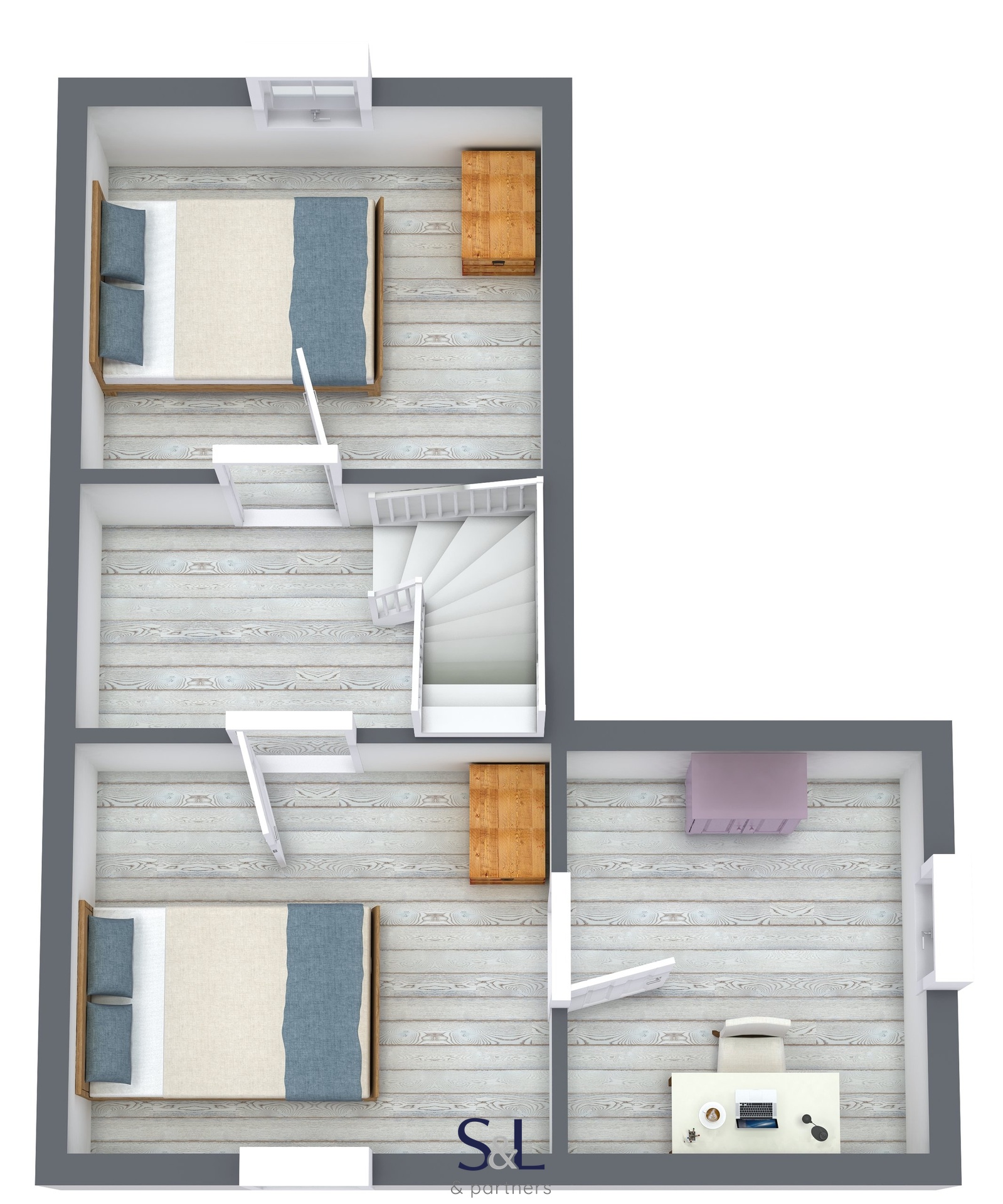 – V podkroví jsou pak dva samostatné pokoje, ideální pro rodiny s dětmi nebo partu přátel.