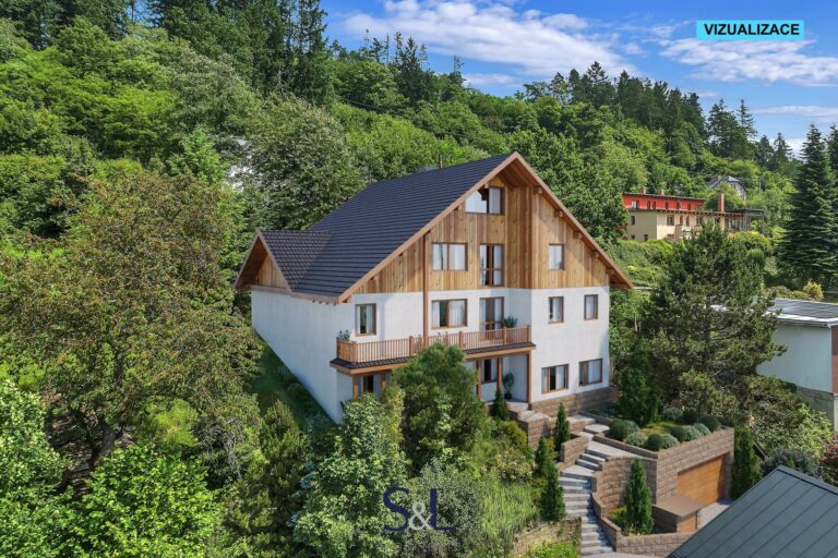– Dům se nachází ve svahu s krásným výhledem do okolní krajiny, v klidné části města v zástavbě rodinných domů.