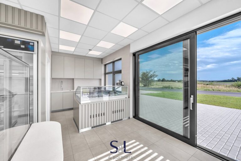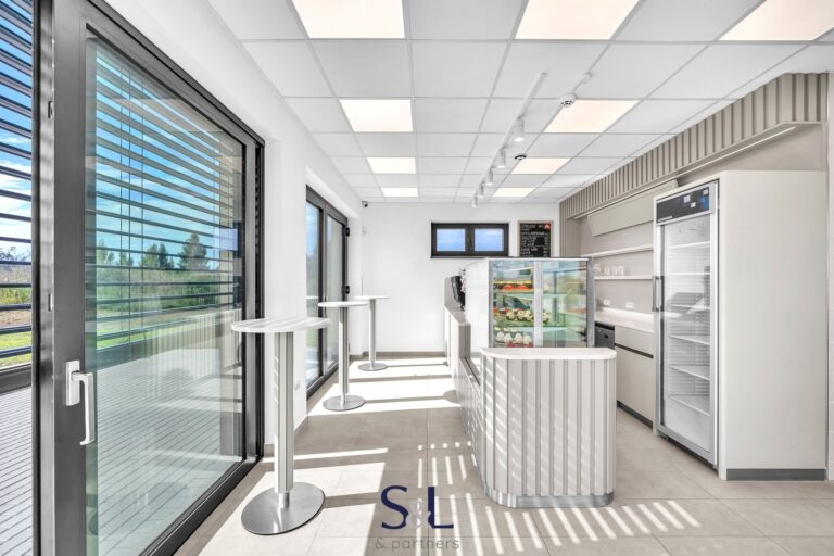 Díky promyšlenému návrhu je možné prostor snadno upravit pro jakýkoliv jiný typ provozovny – od bistra přes kanceláře až po showroom.