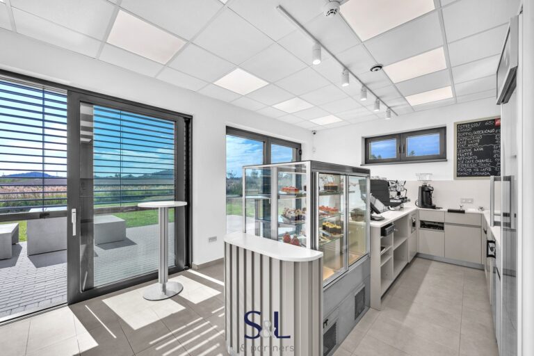 • Prodejní část – světlý a reprezentativní prostor s velkými portálovými okny a elektrickými hliníkovými žaluziemi, ideální pro přímý kontakt se zákazníky.