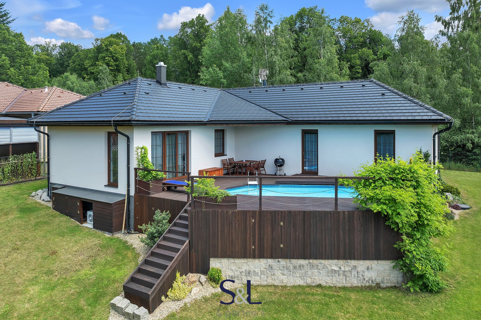 Prostorné a světlé místnosti poskytují dostatek místa pro každodenní činnosti i relaxaci. Z hlavních obytných místností a terasy se nabízí dechberoucí výhled do okolní krajiny. V létě jistě oceníte bazén na terase, který je perfektním místem pro odpočinek a zábavu.