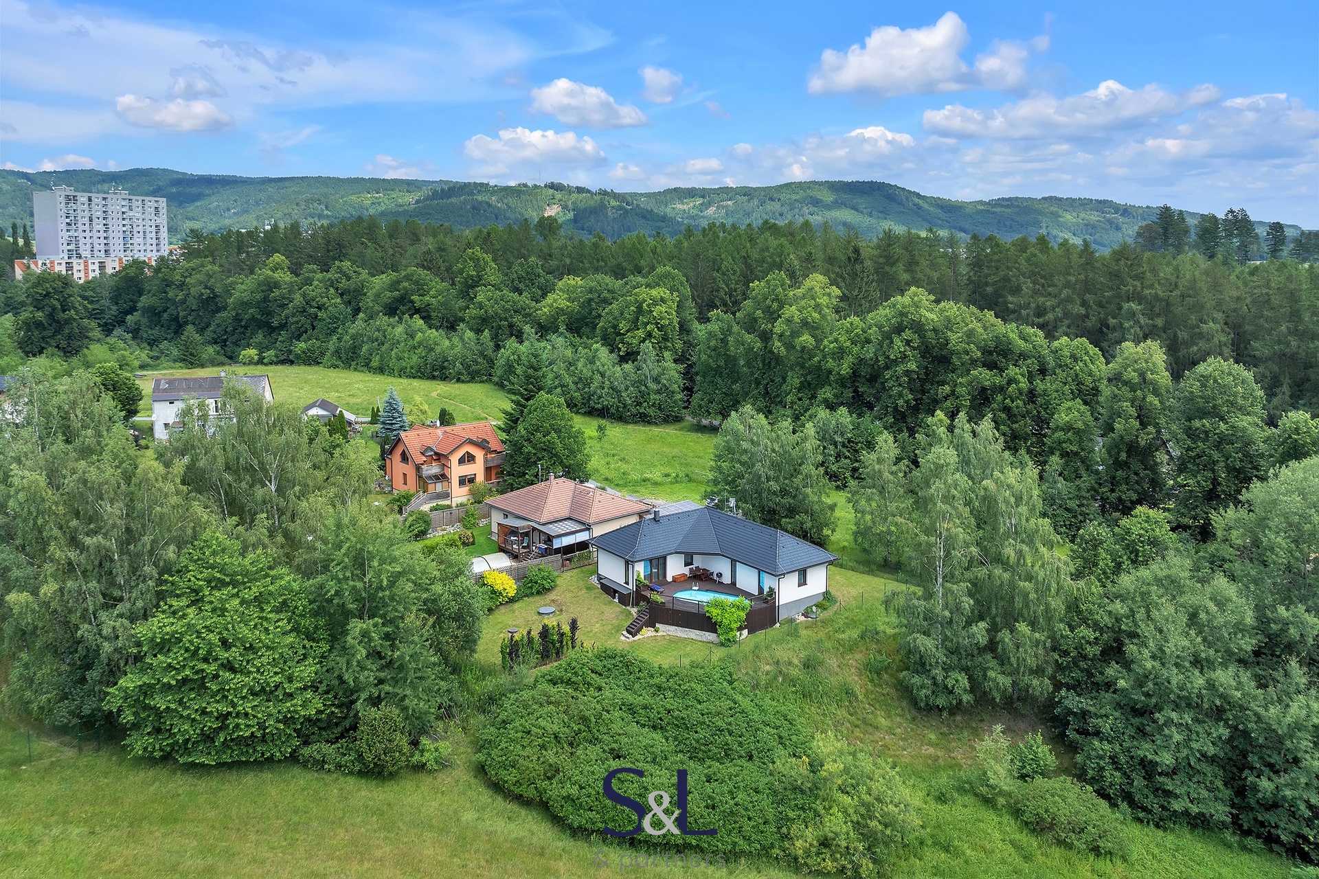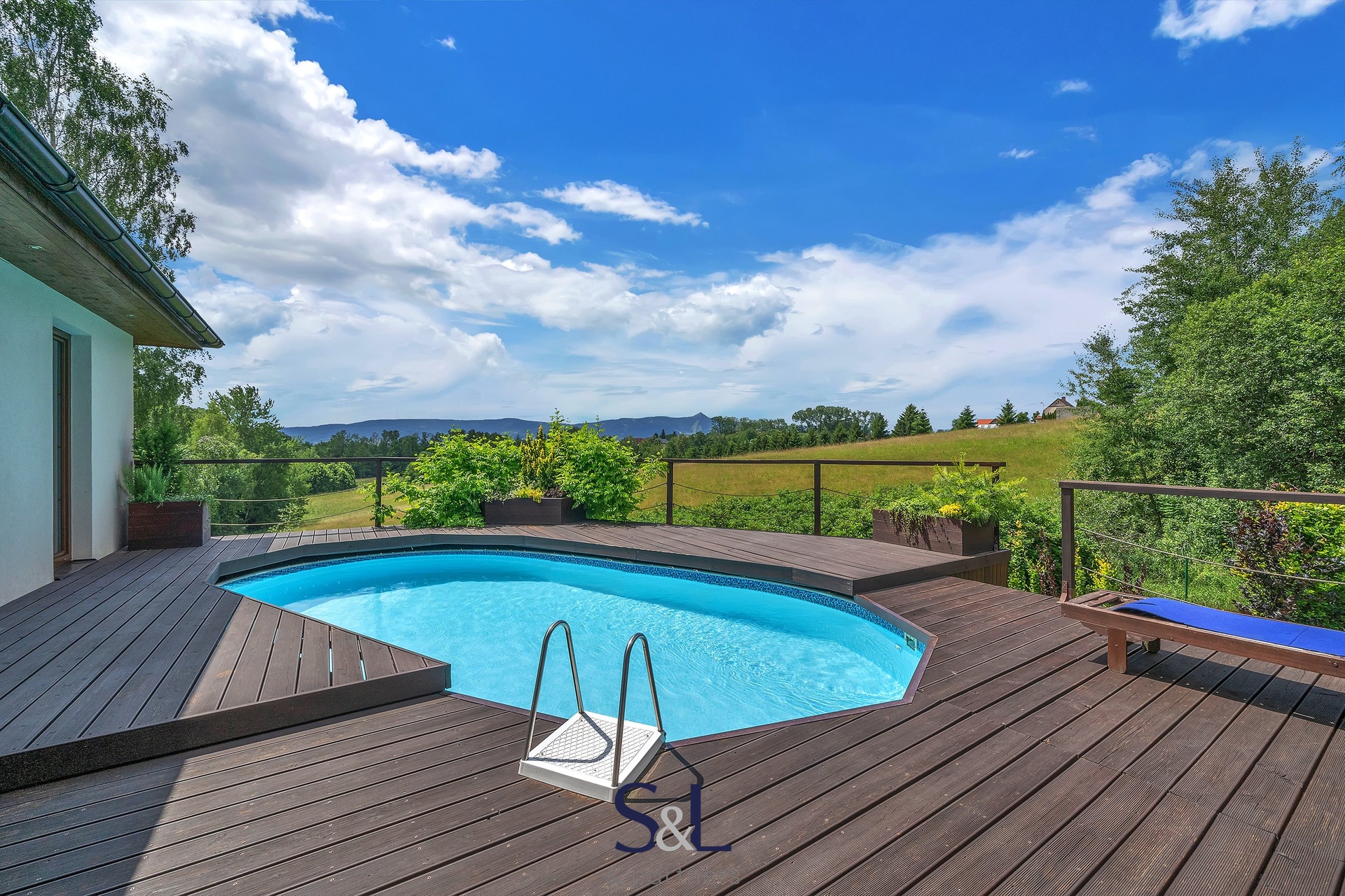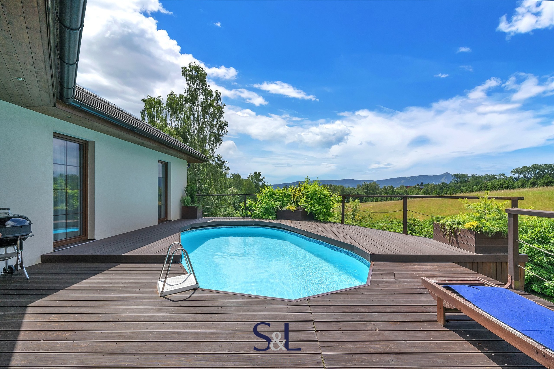 – Výhled: Nádherný výhled z hlavních obytných místností a terasy s bazénem