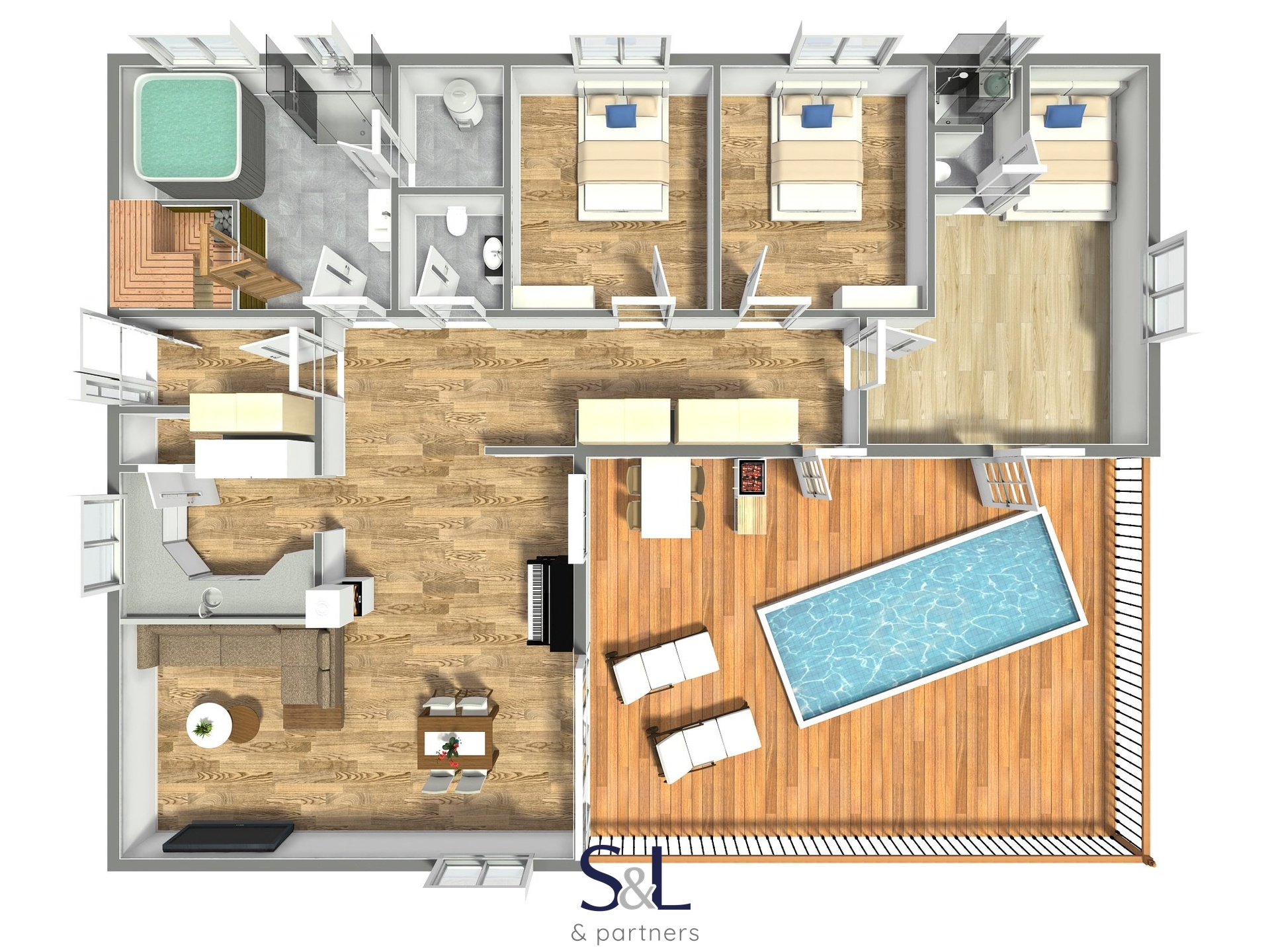 – Koupelna: vybavená vířivkou a finskou saunou