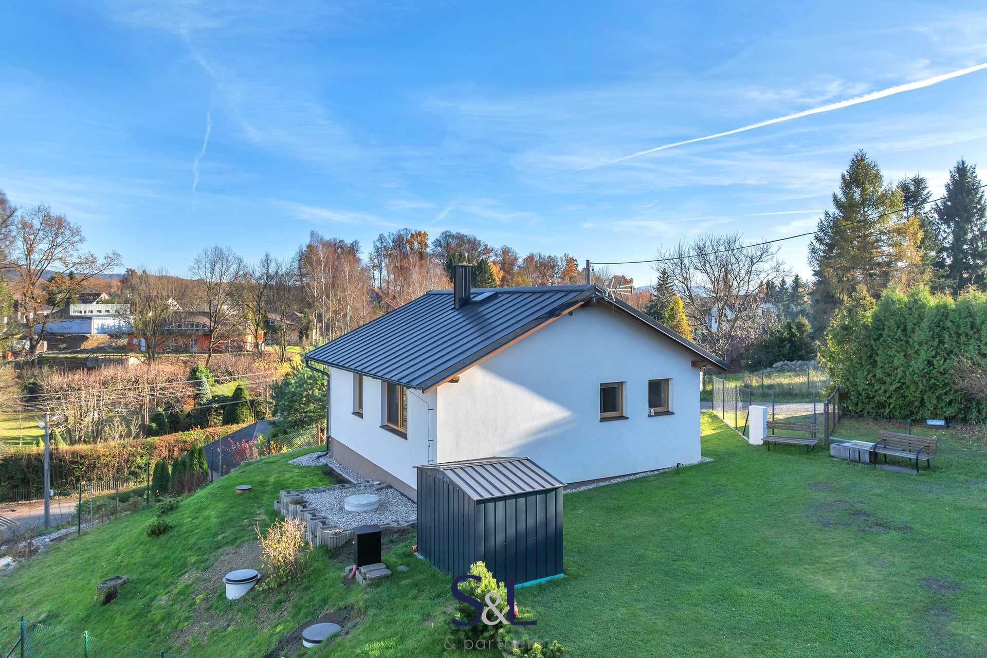 Pozemek o velikosti cca 1000 m² je z části oplocený a poskytuje dostatek prostoru pro zahradu, parkování nebo další úpravy. Součástí je také menší zahradní domek.