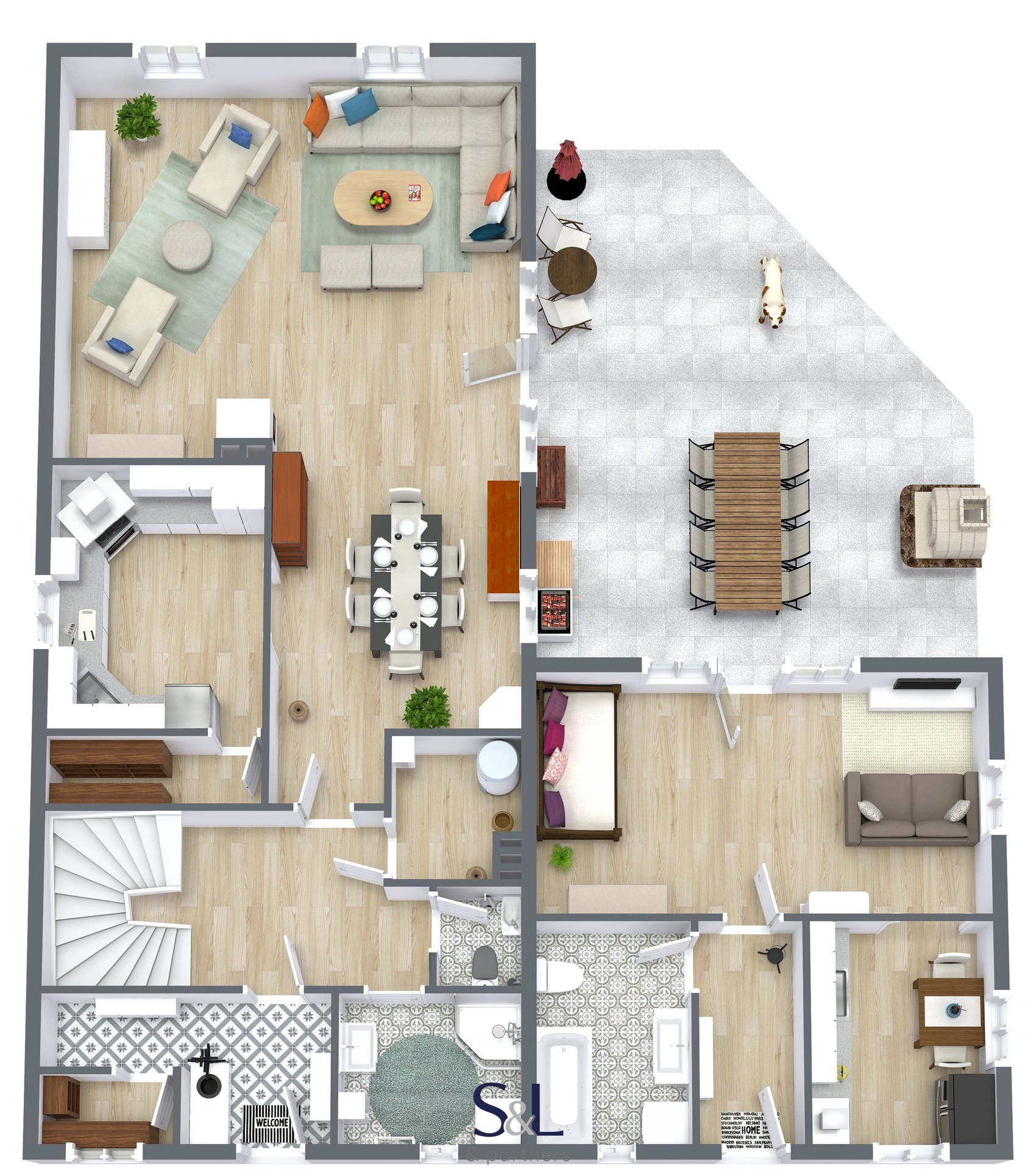 • Terasa, balkón s výhledem do krajiny a venkovní bazén poskytují perfektní zázemí pro relax
