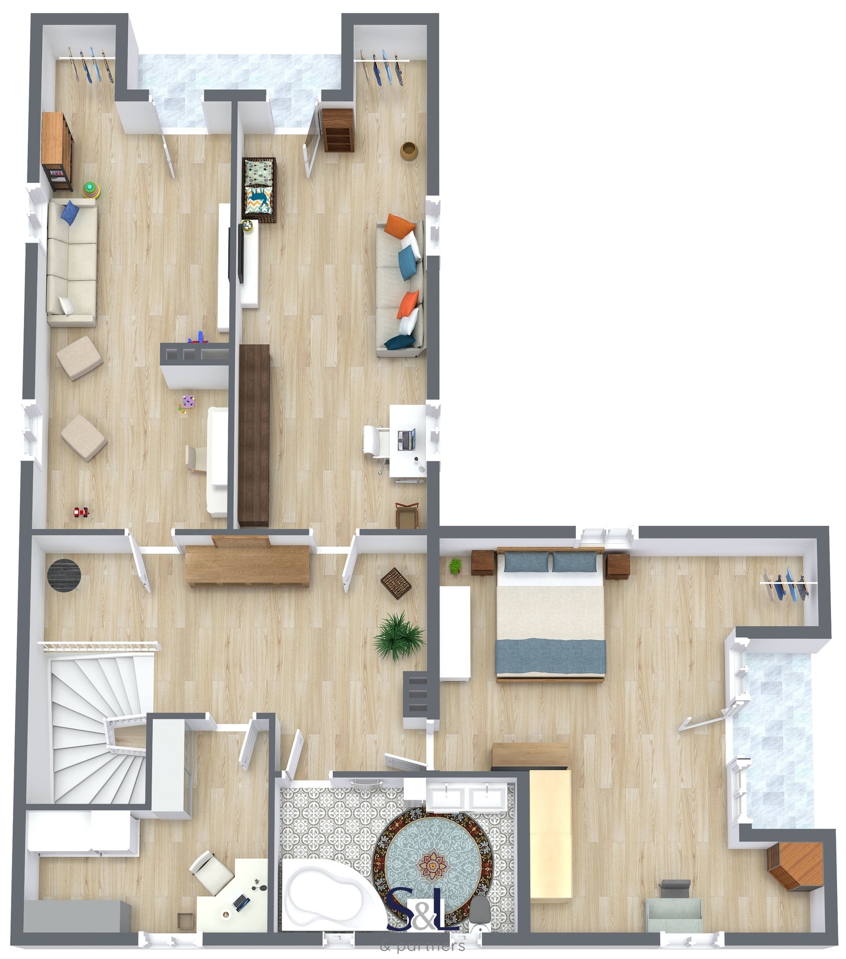 • V přízemí se nachází samostatný apartmán 1+1 s vlastním vchodem – ideální pro hosty, vícegenerační bydlení nebo k pronájmu