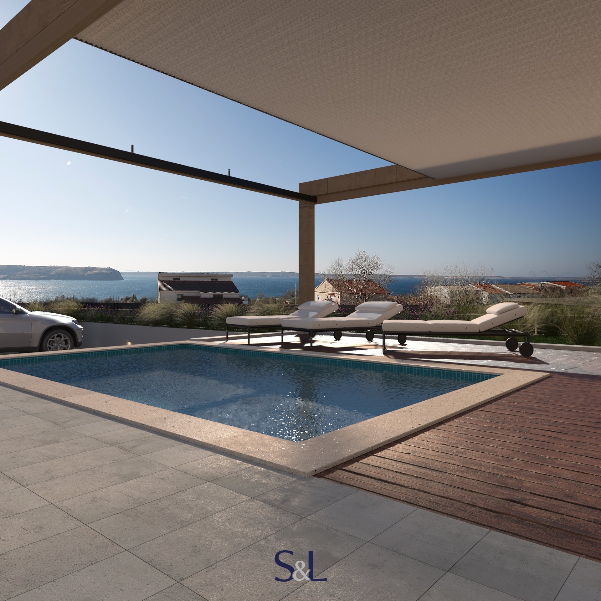 Nabízíme k prodeji jedinečnou vilu v atraktivní lokalitě Rtina, jen několik minut chůzí od moře. Tato moderní nemovitost poskytuje prvotřídní komfort, výjimečnou architekturu a kvalitní provedení. Vila se rozkládá na třech podlažích s celkovou užitnou plochou 174 m², nabízí až tři terasy s výhledem na moře a součástí je i venkovní bazén pro maximální relaxaci.