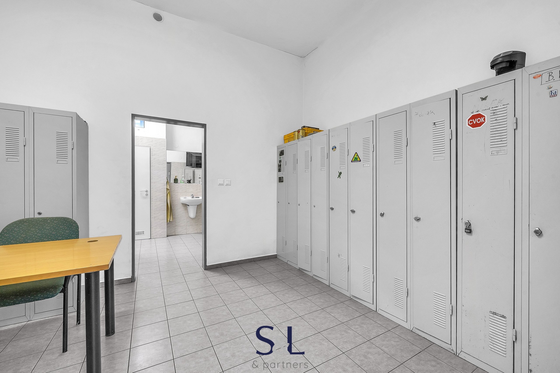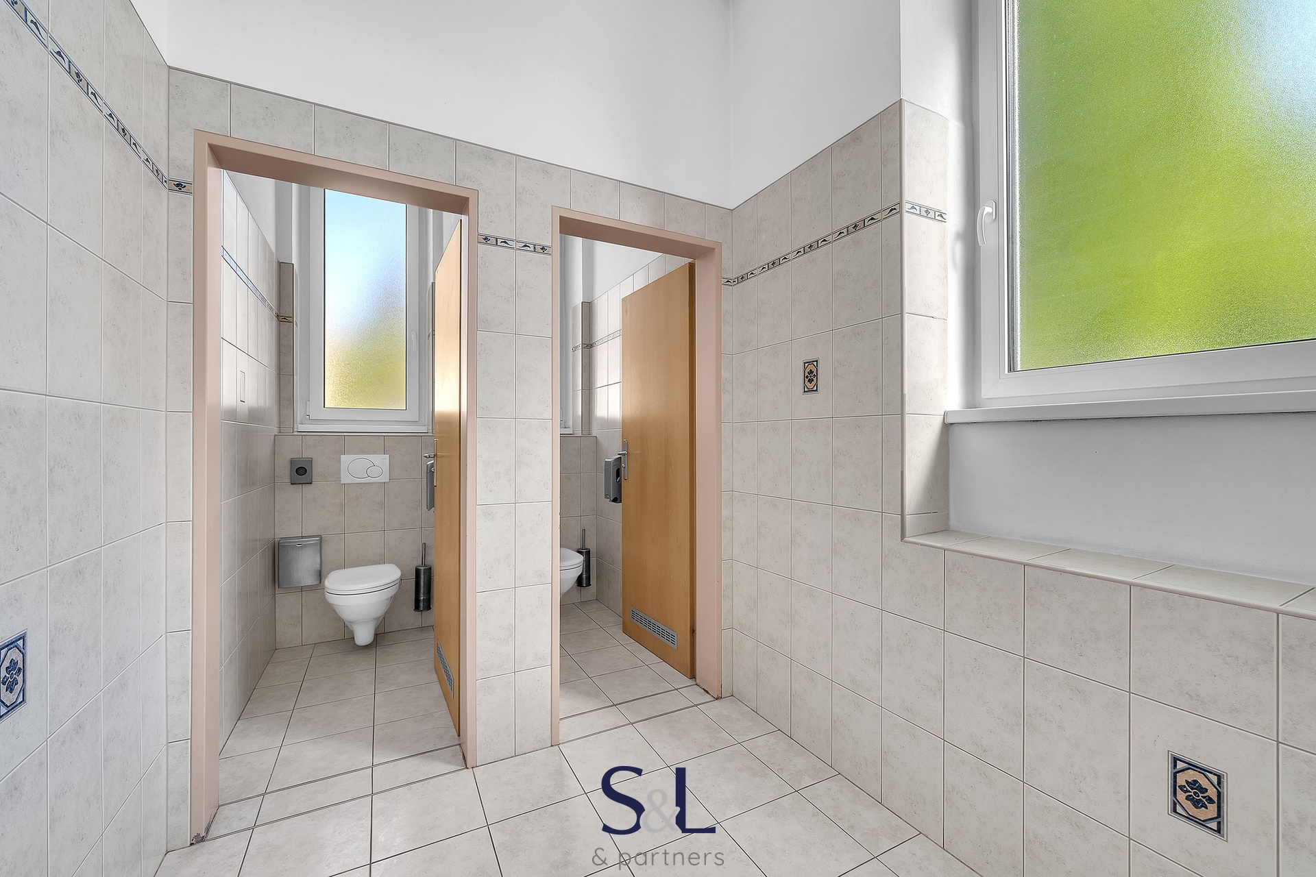 Zázemí tvoří 158 m² sociálních zařízení, šatny a odpočinkové prostory, které zajišťují komfort zaměstnanců. Budova je kompletně zateplená, střechu má novou a okna jsou trojskla z roku 2017, což zaručuje výbornou izolaci a nízké provozní náklady.