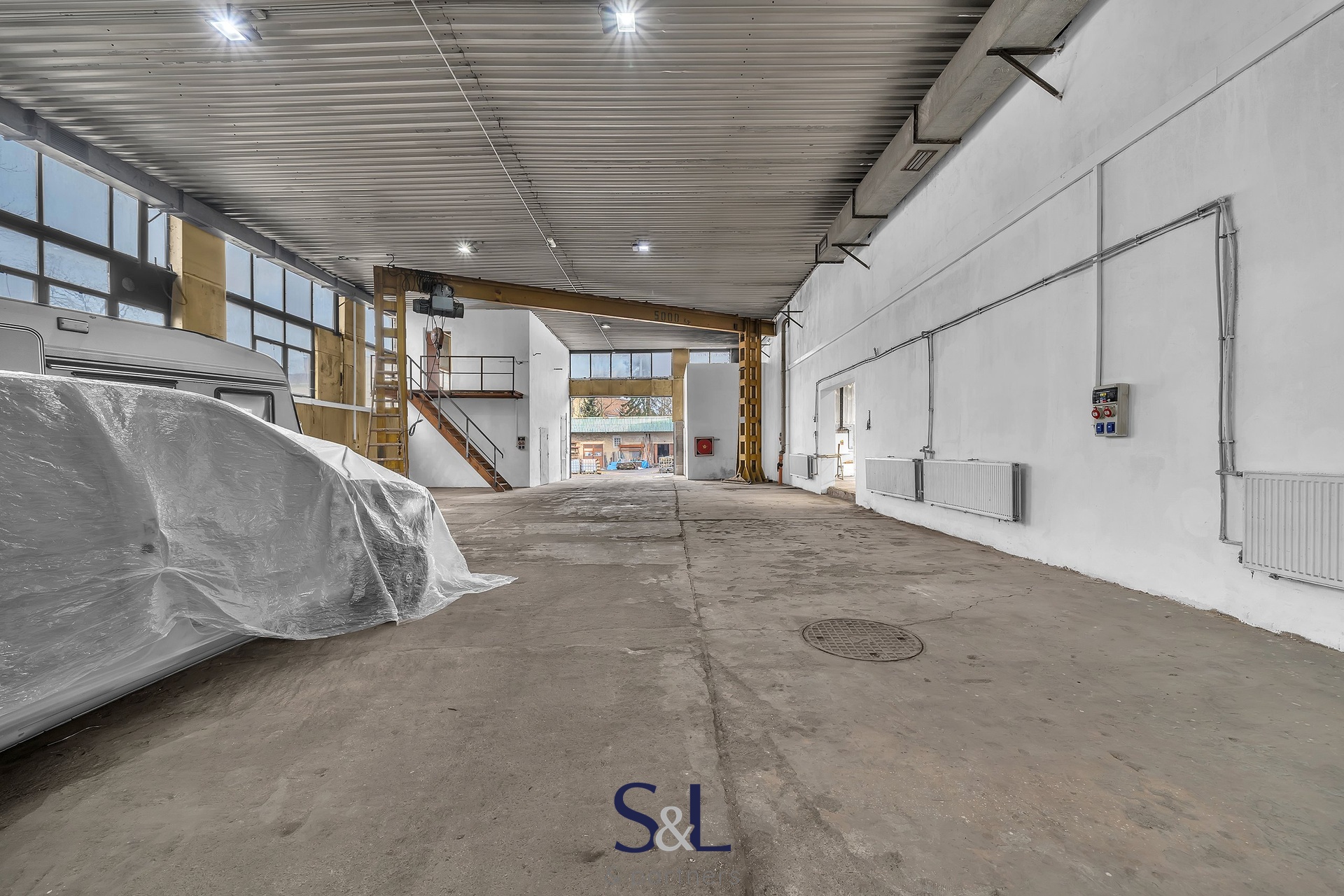 – Skladovacích prostor s možností manipulace s těžkými břemeny díky portálovému jeřábu