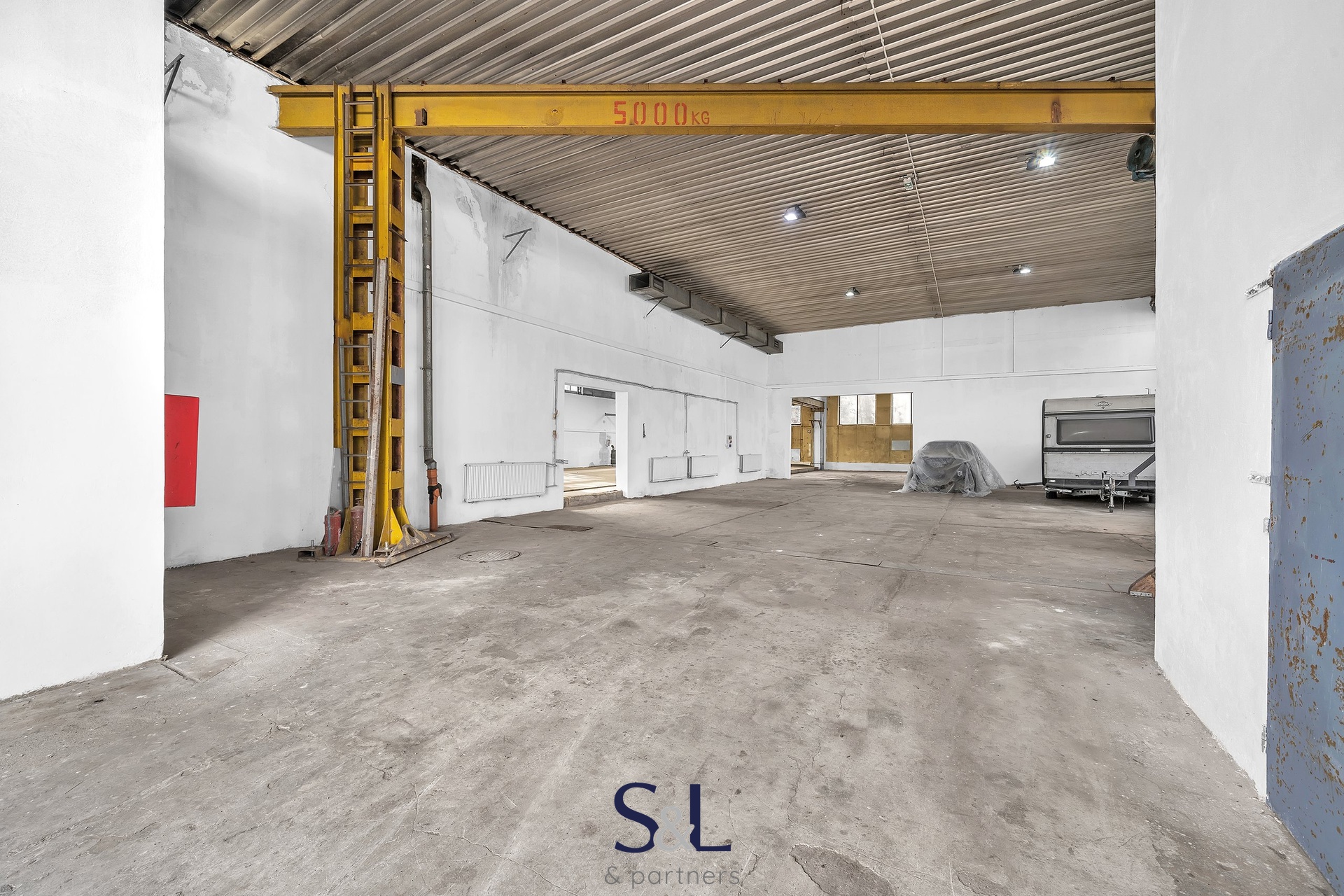 V rámci haly jsou k dispozici kancelářské prostory, zázemí pro zaměstnance včetně sociálního zařízení, WC a sprch. Velkou výhodou je portálový jeřáb s nosností 5 000 kg, který usnadňuje manipulaci s těžkými materiály a produkty, což ocení zejména výrobní firmy či logistické společnosti.