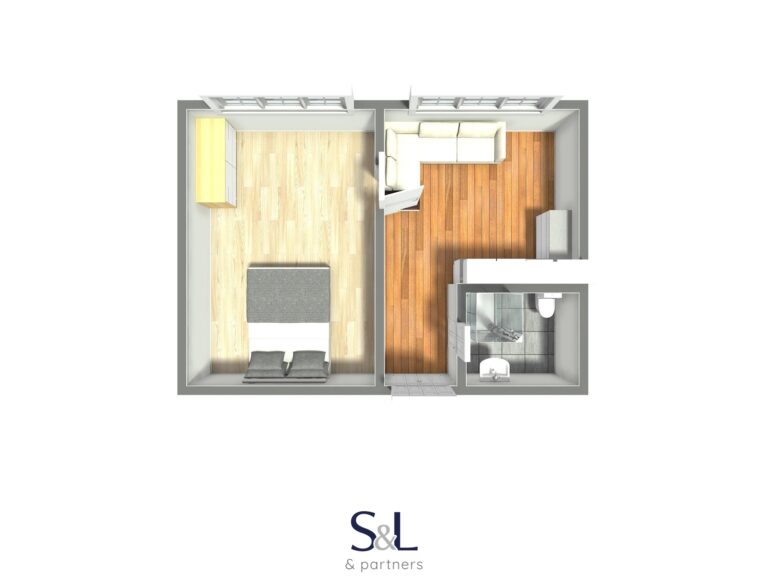Dispozice bytu je tvořena předsíní, ložnicí, koupelnou se sprchovým koutem, toaletou a kuchyní, která je spojena s obývacím pokojem. Byt prošel vkusnou rekonstrukcí.