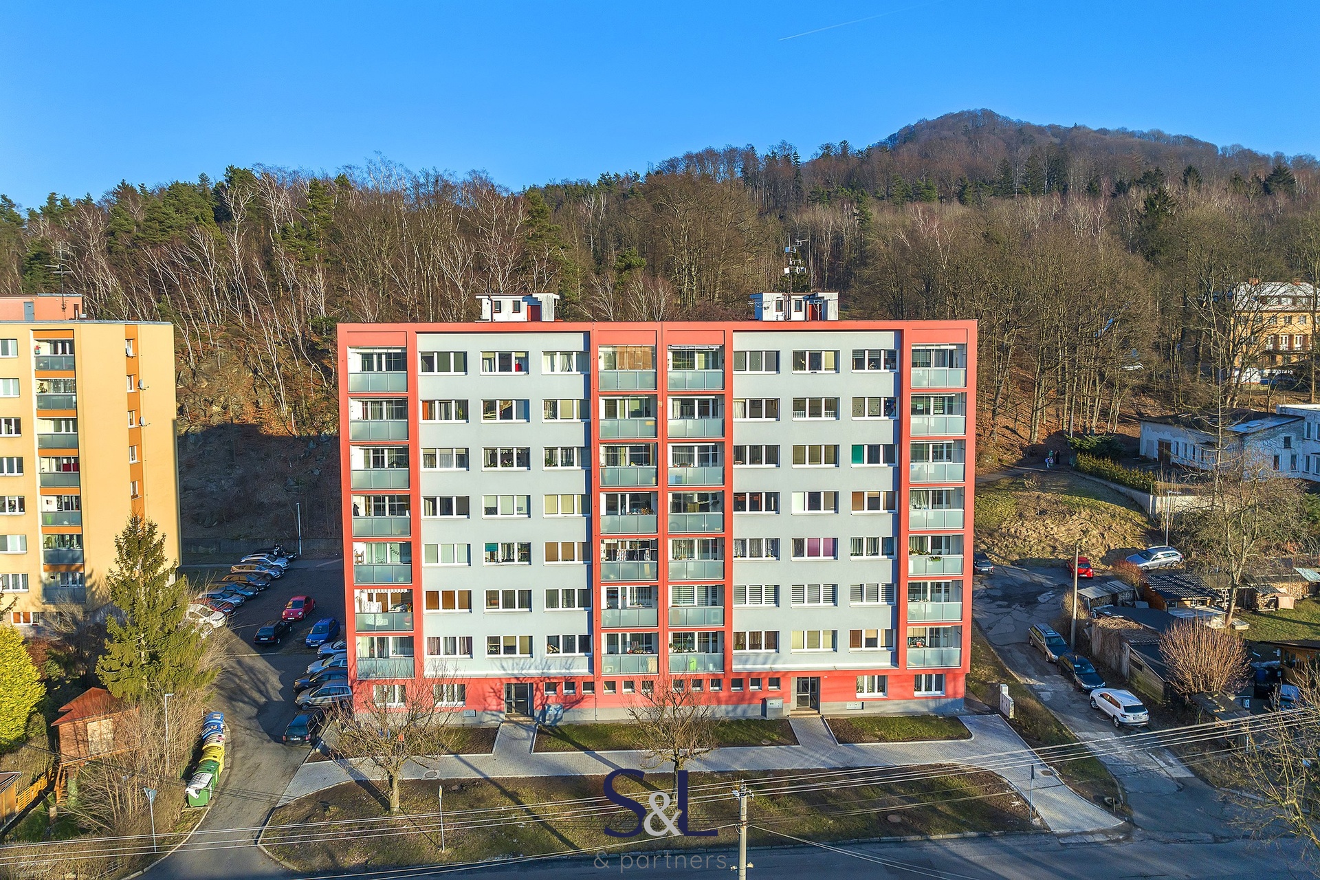 Panelový dům ve kterém se byt nachází prošel revitalizací a je zde zateplení, nová omítka a plastová okna. Výhodou umístění panelového domu je to, že kousek od domu je les, kam můžete jít na procházku. Je zde možnost využívat společnou lodžii na patře.