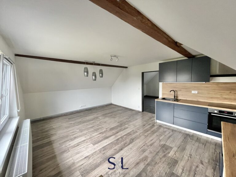 Byt je umístěn v podkroví rodinného domu. Je vybaven kuchyňskou linkou, digestoří, elektrickou troubou a indukcí. Vytápění je zajištěno pomocí plynového kotle. K bytu náleží sklepní kóje.
