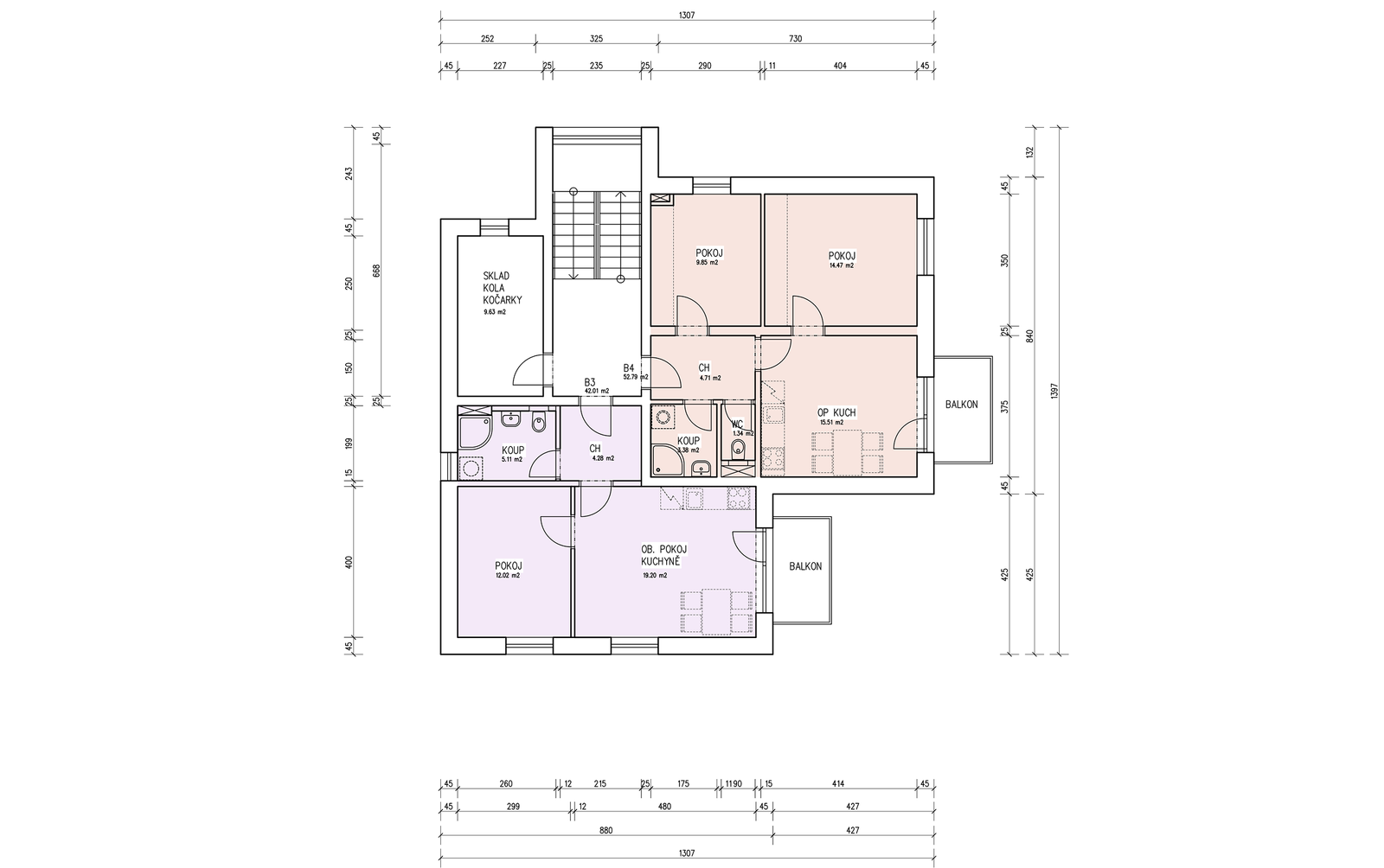 | B4 | 49,26 m² + 3,94 m² | 3 990 000 Kč | SV | 3+kk | 2 | NE | ANO | ANO | ||||||||||