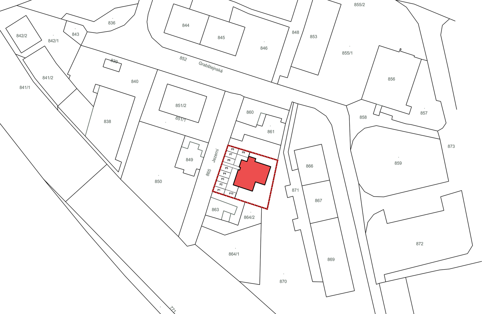 Ulice Jezerní je v této části slepá a slouží pouze k obsluze několika domů, což zaručuje minimální dopravní zatížení a klidné prostředí pro rezidenty. Příjezd k domu a parkování je snadné a bez komplikací – k dispozici je deset kolmo orientovaných parkovacích míst přímo u objektu. Nejbližší obchody, školy i MHD jsou v dosahu několika minut jízdy, přičemž centrum Hrádku nad Nisou i okolní přírodu lze snadno dosáhnout pěšky či na kole.