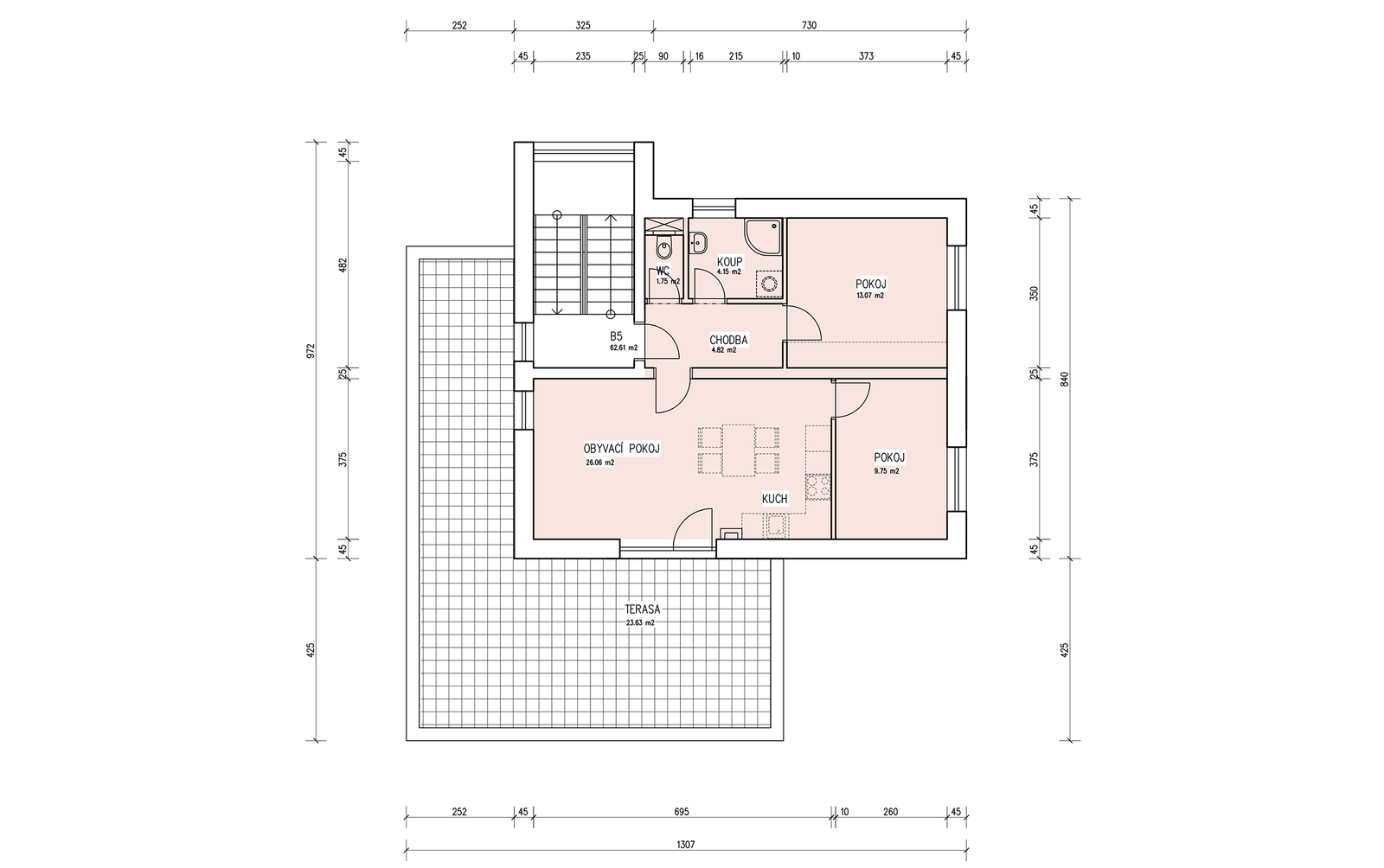 | B5 | 59.6 m² + 23,63 m² | 6 242 250 Kč | JV | 2+kk | 3 | ANO | NE | ANO | ||||||||||